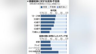 ニュー速+ 斎藤元彦兵庫県知事「支持」46%、18-29歳の6割や参政党支持層の6割が支持…読売出口調査