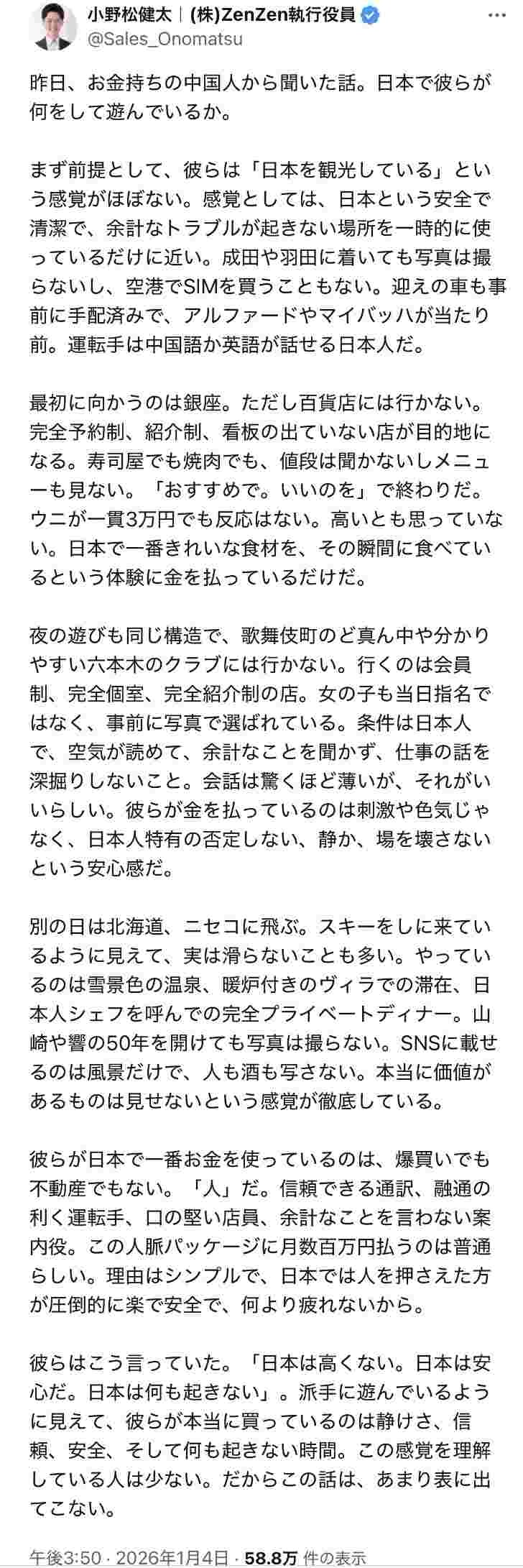 まあ要するに中国が嫌いだから中国人騙して金かき集めて日本に来てるって事だよな